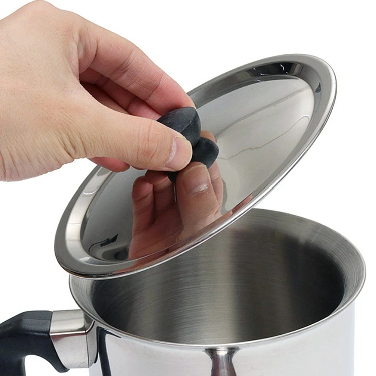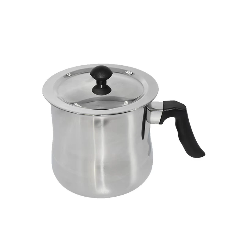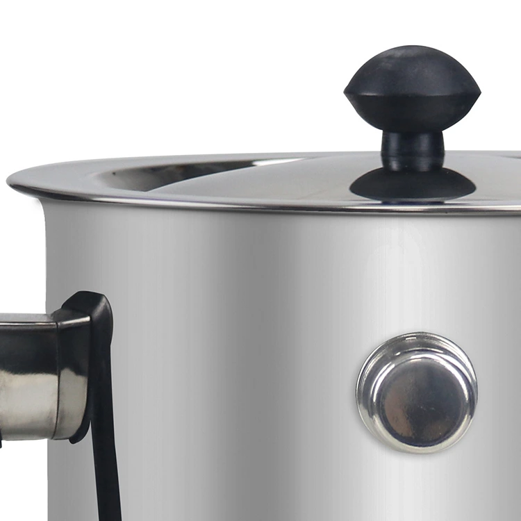 En primer lugar, el mango resistente al calor: la olla está equipada con un mango resistente y resistente al calor, que está diseñado para adaptarse cómodamente a la mano, lo que permite a los usuarios sostener y mover la olla fácilmente sin quemarse, lo que garantiza un funcionamiento seguro. El mango está firmemente conectado al cuerpo de la olla, no es fácil de aflojar, lo que garantiza la seguridad de uso a largo plazo. En segundo lugar, la tapa de acero inoxidable: la olla está equipada con una tapa de acero inoxidable transparente, que permite a los usuarios observar claramente el estado de los materiales del interior (como la cera derretida, el chocolate derretido, la leche hirviendo) sin abrir la tapa, evitando la pérdida de calor y las salpicaduras de material, y facilitando el control en tiempo real del proceso de procesamiento.